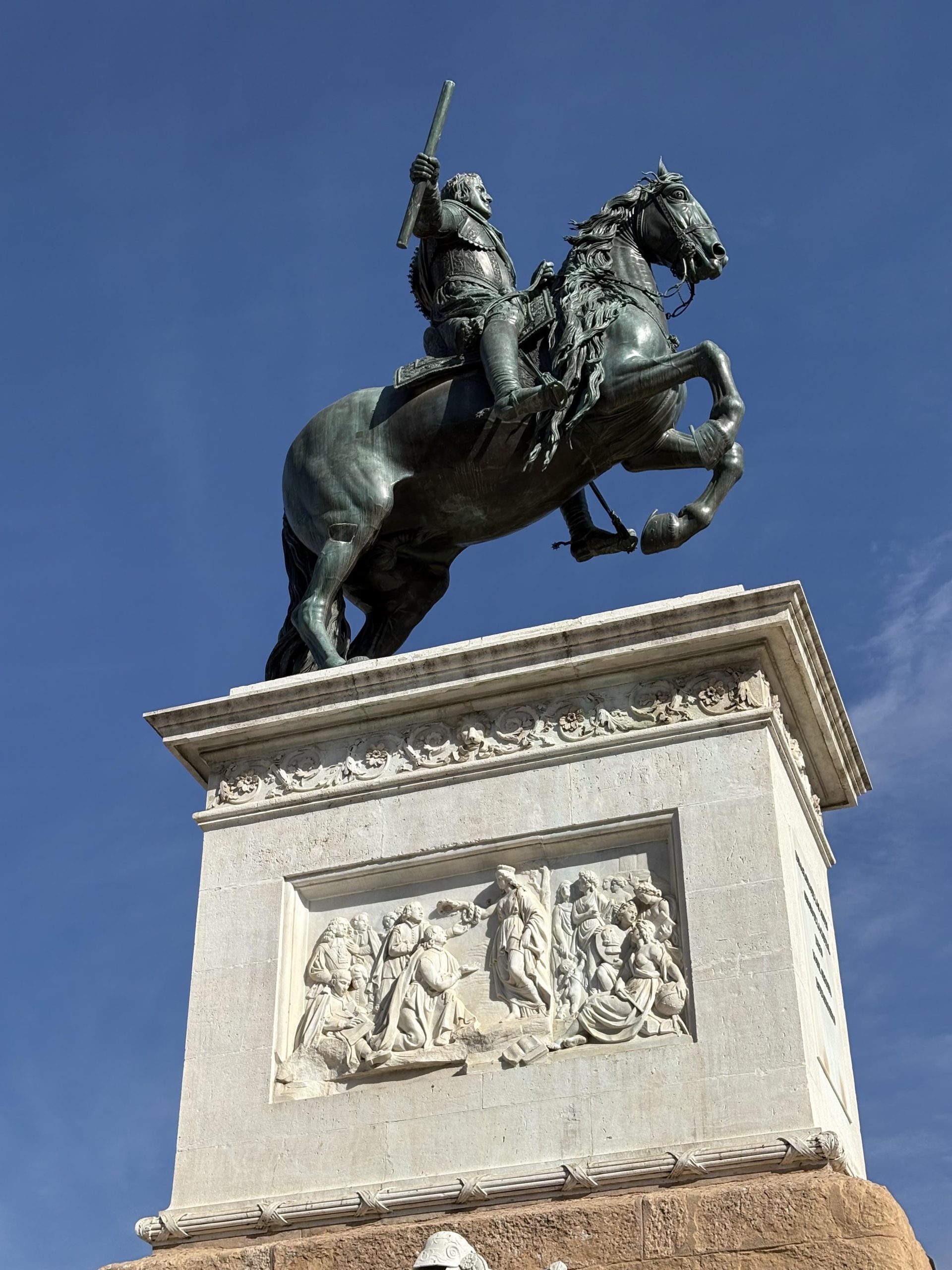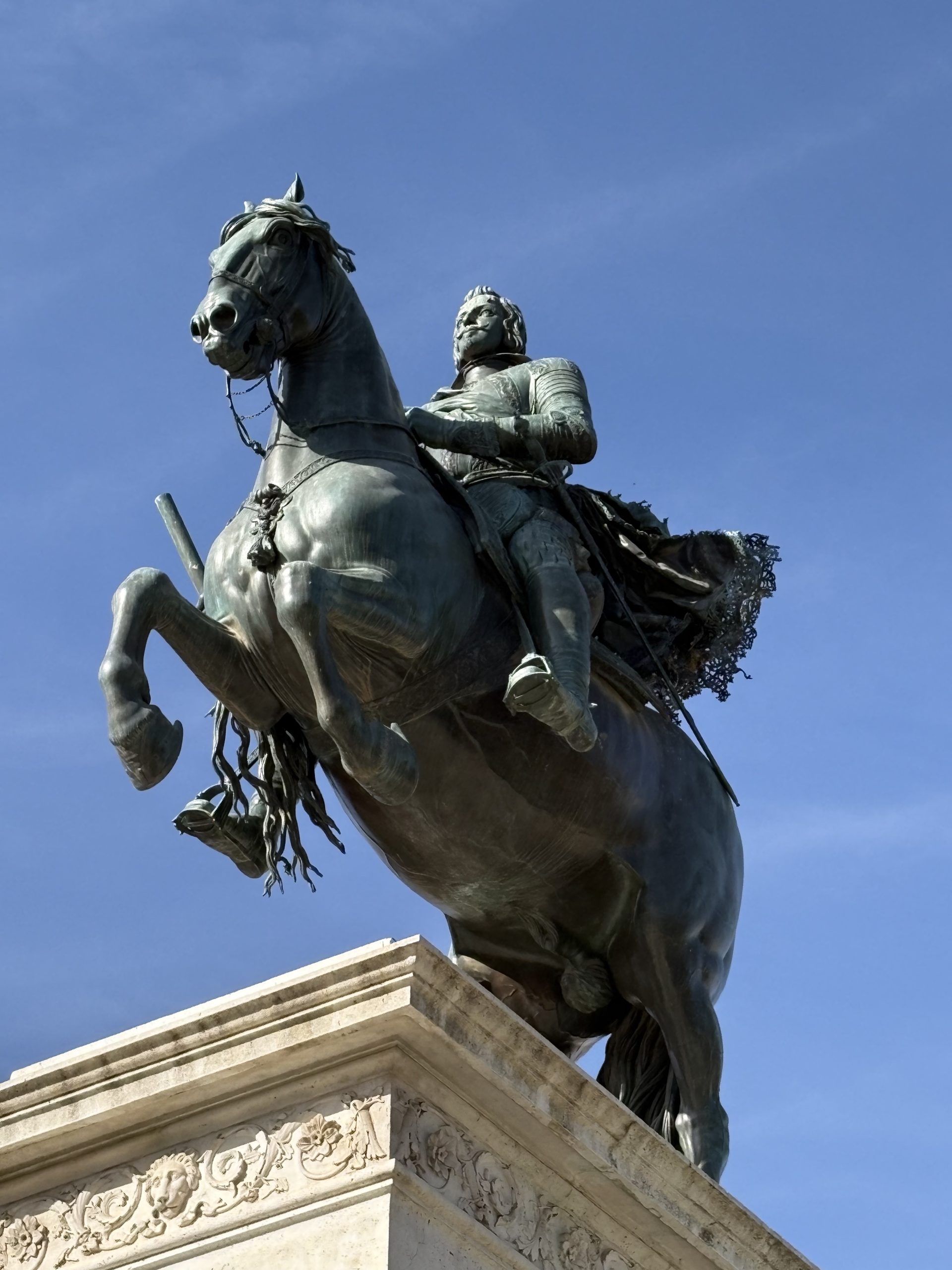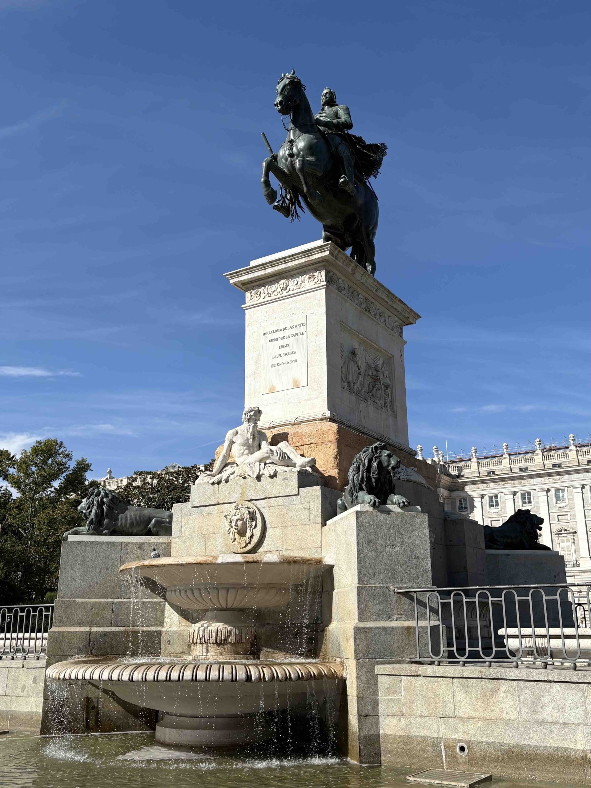 Para empezar, nos acercamos hasta la Plaza de Oriente donde veremos la escultura ecuestre de Felipe IV, el Teatro Real y el Palacio Real, además de pasear por los jardines y para descubrir la divertida historia de sus esculturas.