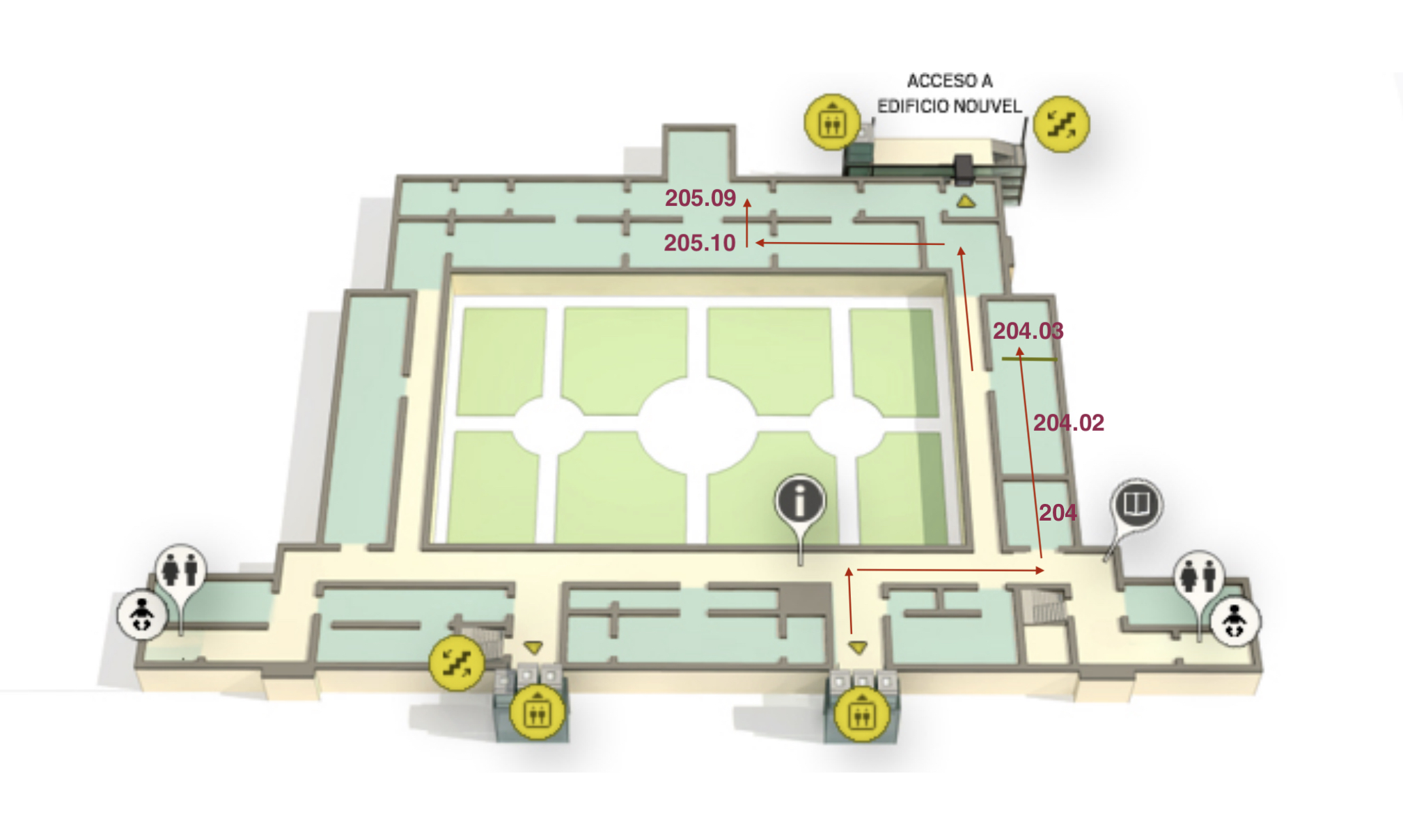 Segunda planta del Edificio de Sabatini. Salas 204, 204.02, 204.03, 205.10 y 205.09.